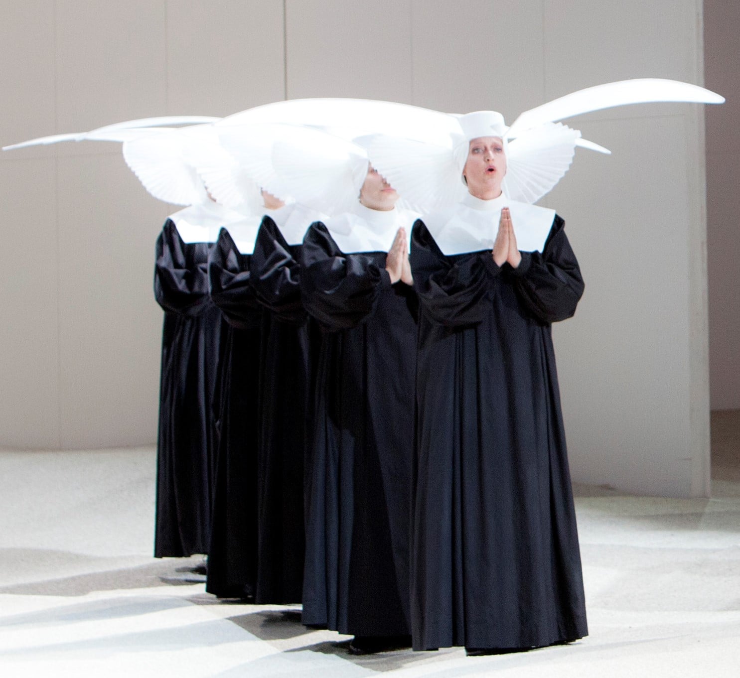In deze productie gaan we gekleed als nonnen, een idee geïnspireerd op Fellini. Het is bedoeld als knipoog in het stuk. Manon moest in eerste instantie het klooster in. Nu komen een paar nonnen haar onderhouden, maar ze vindt het allemaal maar saai.”