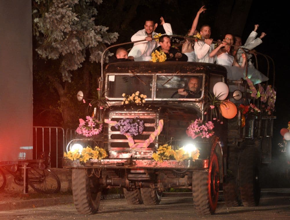 Prachtig is ook de opkomst van Zerlina, Masetto en hun bruiloftsgasten. Ze racen in een truck en een busje de heuvel op, springen uitbundig op het ’toneel’ en beginnen te feesten, begeleid door dansmuziek die niet op Don Giovanni gebaseerd lijkt te zijn. De toevoeging heeft zin; het zet de bruiloftssfeer veel krachtiger neer dan Mozarts beperkte koorstuk. De wervelende sopraan Annamária Kászoni en de humoristische bas-bariton András Hábetler stelen ondertussen de show als het pasgetrouwde paar.