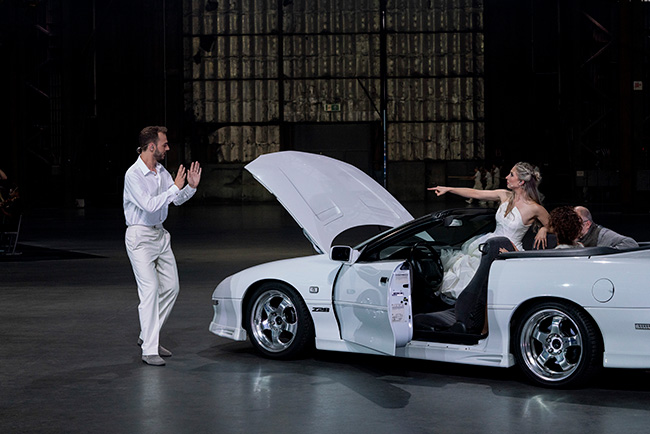 Susanna herkent in haar Figaro niet langer de man die ze had getrouwd. Niet meer op zijn ponteneur staan zoals vroeger, maar met iedereen meepraten in zijn nieuwe barbershop. Ze wijst hem af, laat zich verleiden door een klant, Herr von Cherubin, (Erik Slik) die haar vervolgens een baan als serveerster geeft in zijn nachtclub. Die scène wordt aangegrepen voor een spetterende act van mezzo sopraan Jony Overdijk als geoefend paaldanseres.